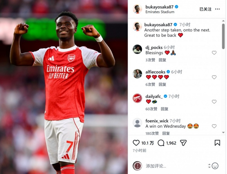 星空体育官网-伤愈复出!萨卡社媒晒照庆祝胜利:又迈出一步,很高兴回归